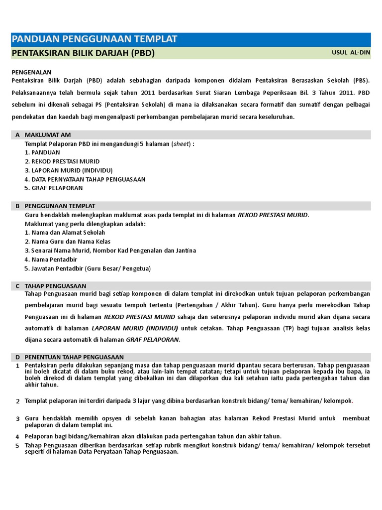 Templat Pelaporan Pentaksiran Bilik Darjah Pbd Versi 3 0 Baru Pendidik2u