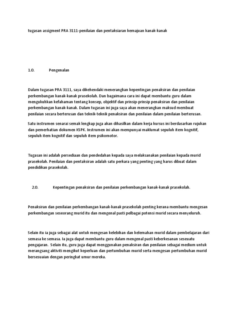 Kepentingan Penaksiran Dan Penilaian Perkembangan Kanak