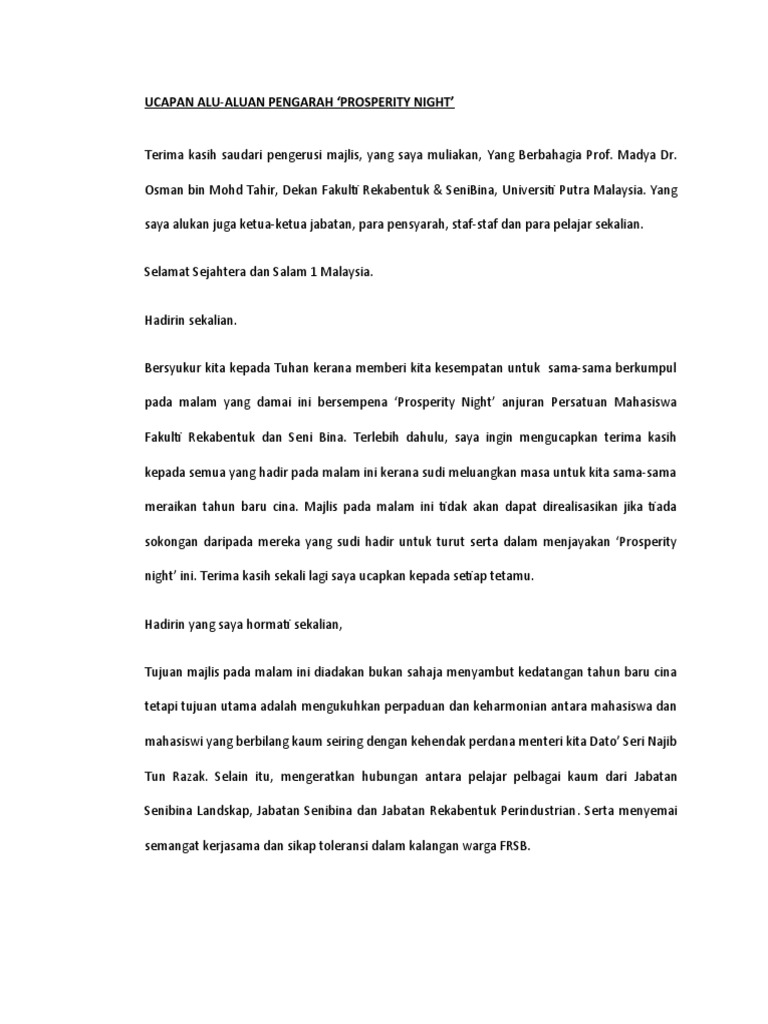 Pengacara Majlis Contoh Teks Ucapan Alu Aluan