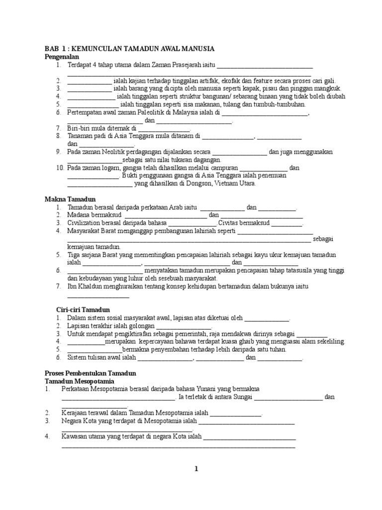 Kupasan Buku Teks Sejarah Tingkatan 4 Bab 1 Kemunculan Tamadun Awal Manusia 1