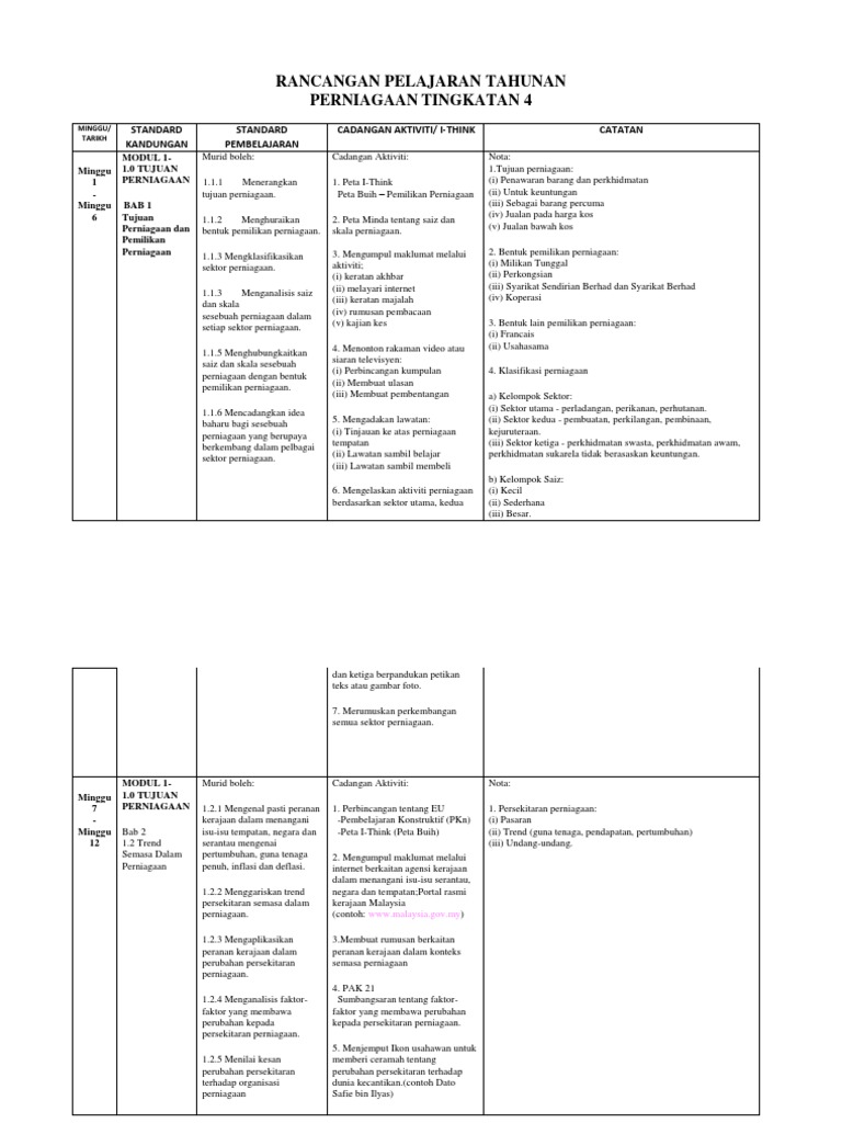 Rpt 2020 Perniagaan Tingkatan 4 Kssm Doc