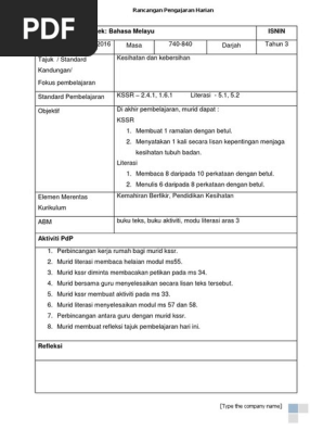 Rph Bm Tahun 3 Minggu 8 2017 Kesihatan Dan Kebersihan Autosaved