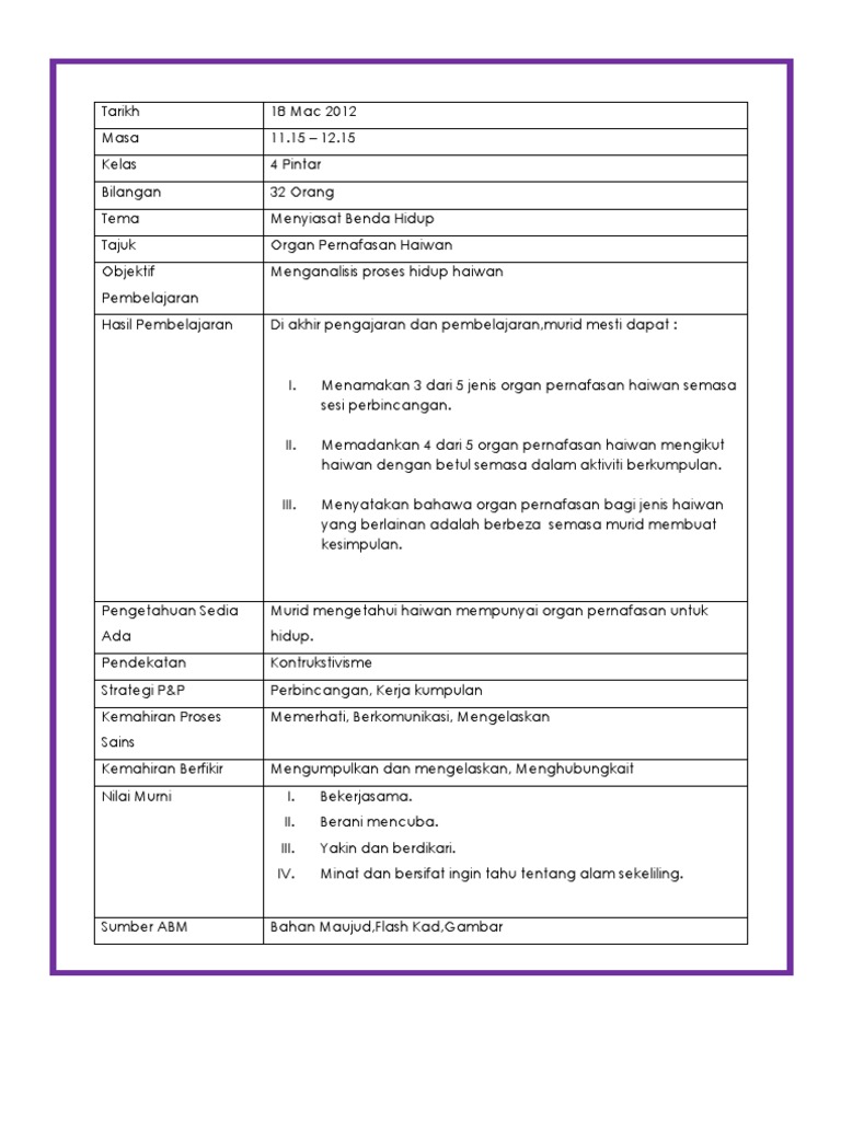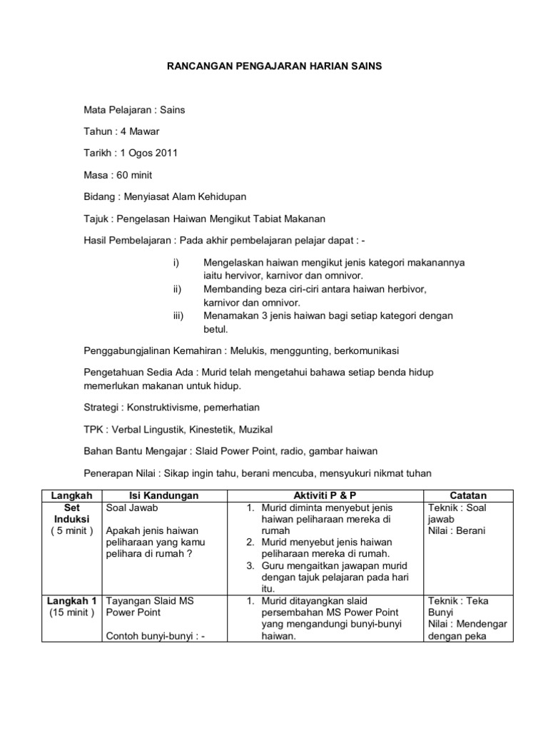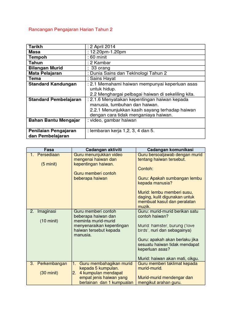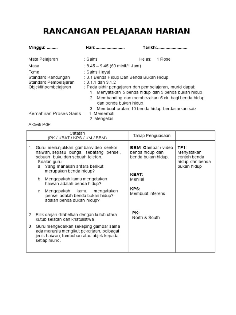 Rancangan Pengajaran Harian Kssr Dunia Sains Dan Teknologi Tahun 2