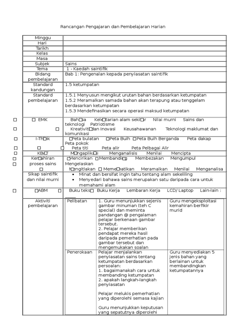 Rancangan Pengajaran Harian Panitia Bahasa Melayu Sk Bukit Balacon Mata Pelajaran Bahasa Melayu Kelas 5 Intelek Tarikh Critical Thinking Education Templates