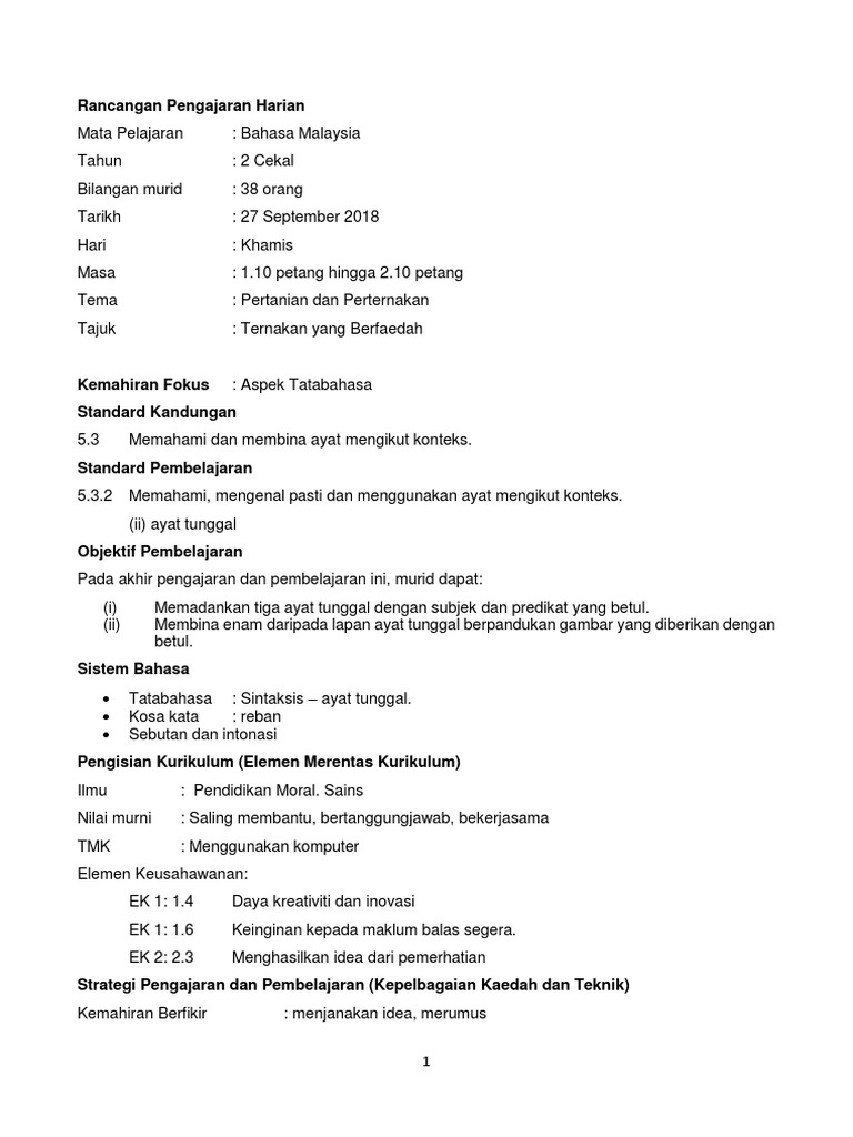 Doc Rph Kssr Bahasa Melayu Tahun 1 Tahun 2 Docx Nia Marara Academia Edu