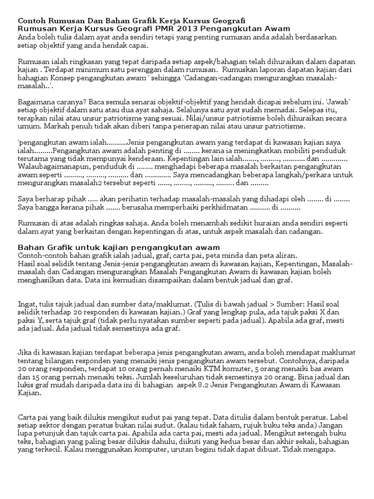 Kerja Kursus Geografi Pmr 2013 Docx Kerja Kursus Geografi Pmr 2013 Pengangkutan Awam Nama Tingkatan Sekolah Nama Guru Tarikh Hantar Tajuk Kajian Course Hero