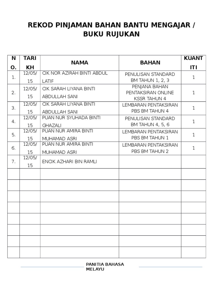Rekod Pinjaman Bahan Bantu Mengajar